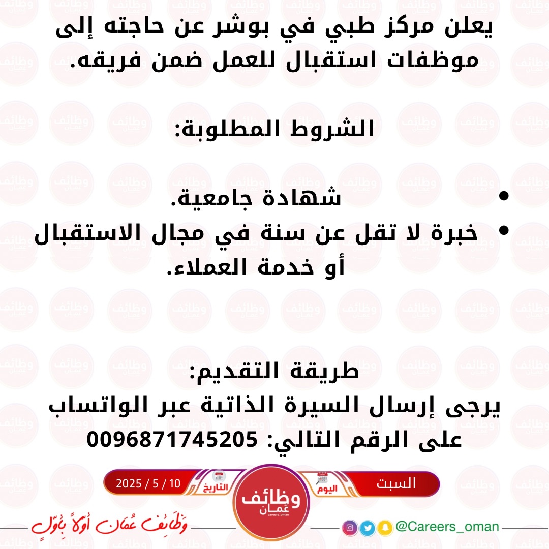 مركز طبي في بوشر - فرص وظيفية ( موظفات استقبال )