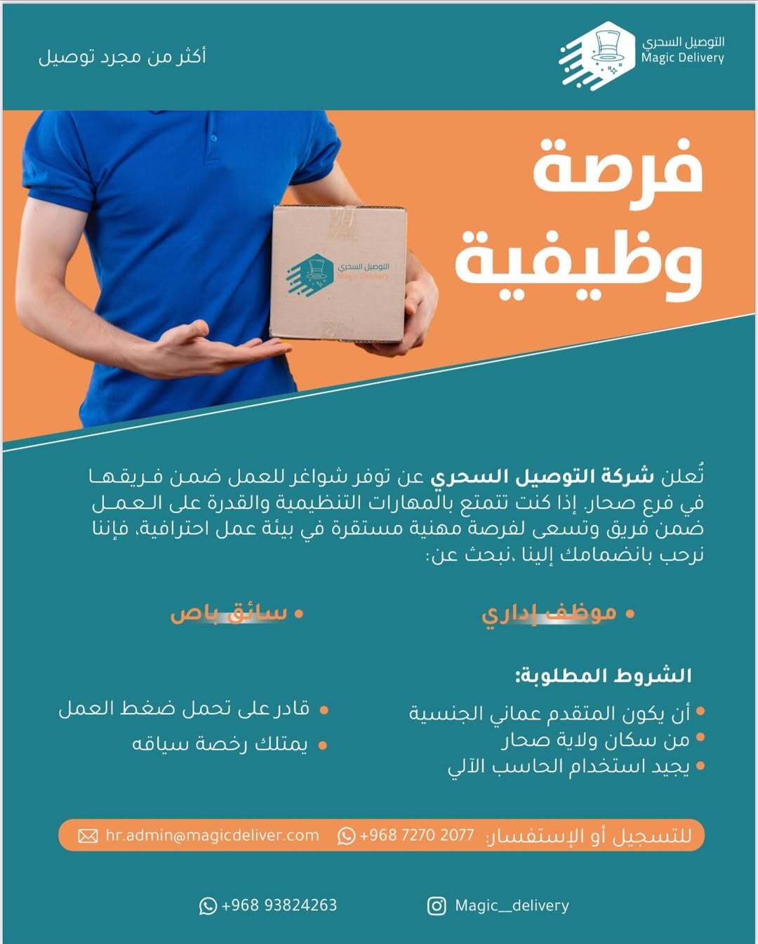 شركة التوصيل السحري في صحار - وظائف شاغرة ( موظف إداري + سائق باص )