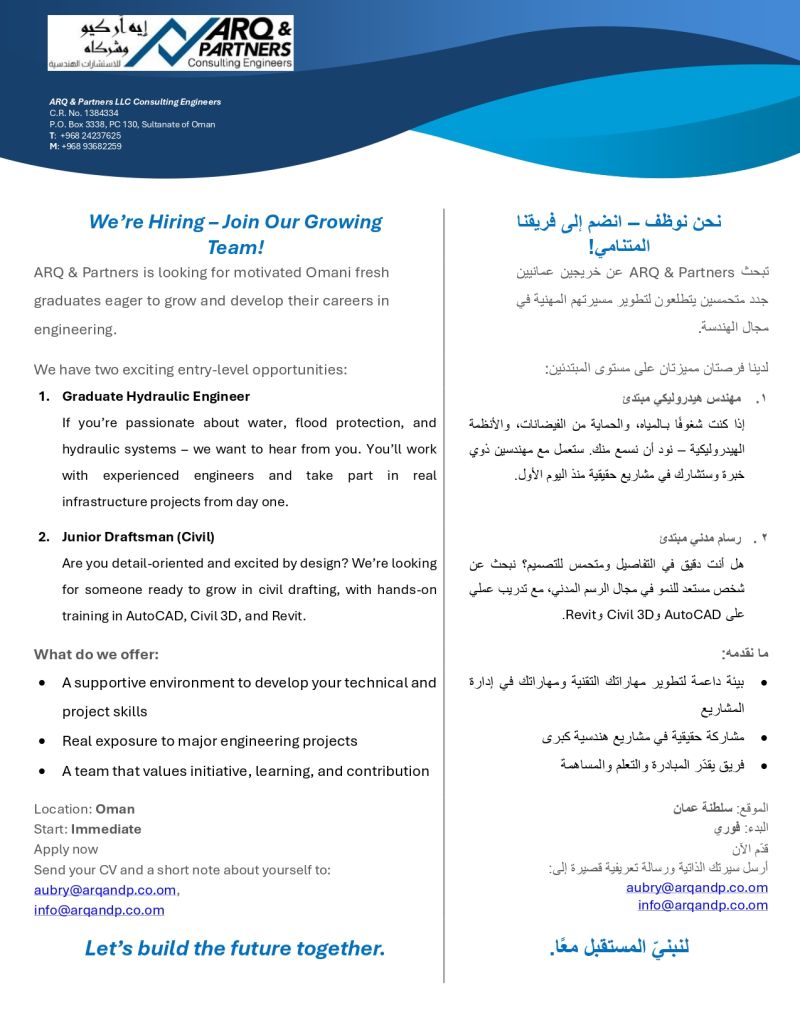 شركة إيه آركيو وشركاه للاستشارات الهندسية في مسقط - وظيفتين شاغرتين