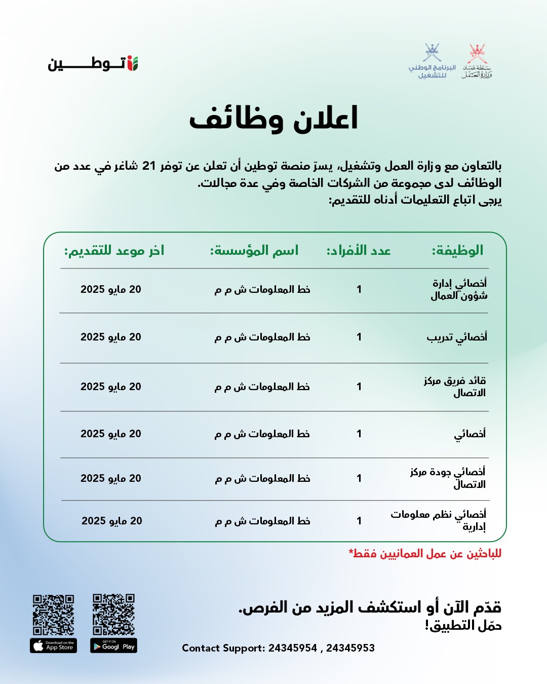 منصة توطين - 21 وظيفة شاغرة لدى مجموعة من الشركات الخاصة وفي عدة مجالات