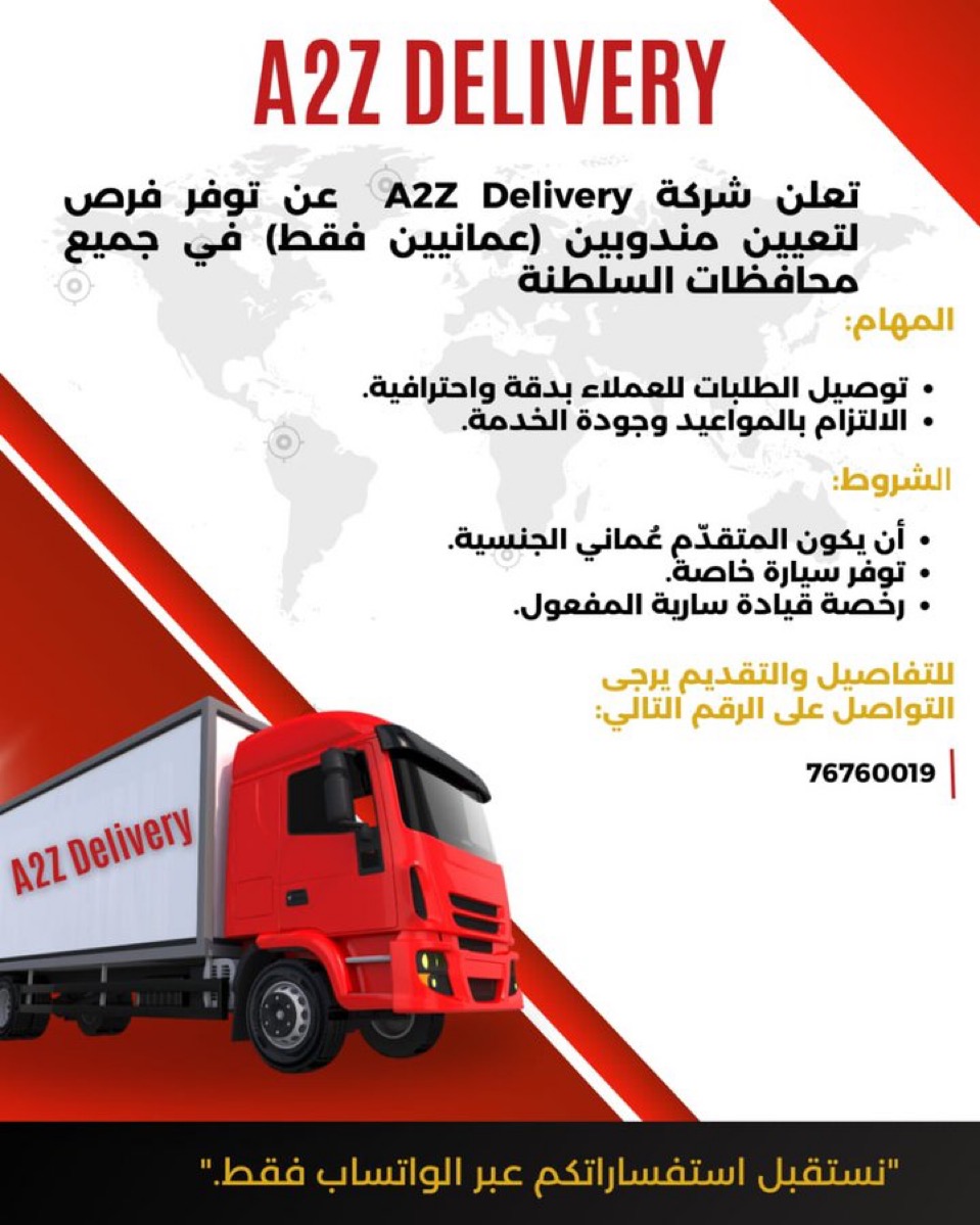 شركة A2Z Delivery - فرص شاغرة ( مندوبين )