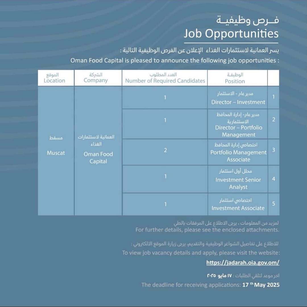 الشركة العمانية لاستثمارات الغذاء - 6 فرص وظيفية