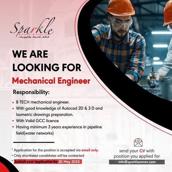 شركة التألق للأعمال والتوريدات في مسقط - وظيفة شاغرة ( Mechanical Engineer )