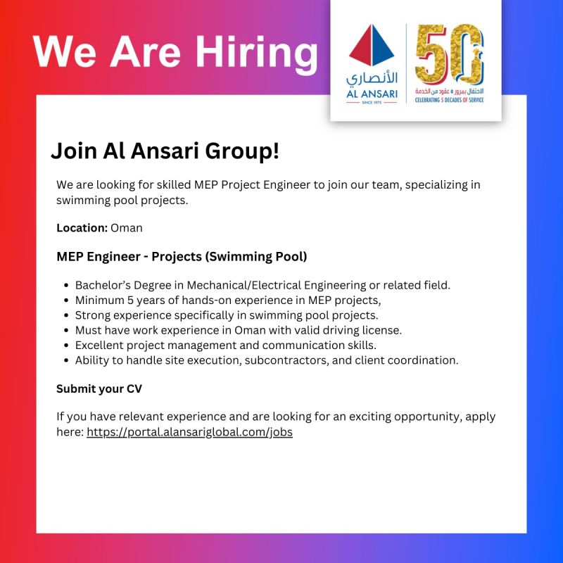 شركة الأنصاري التجارية في غلا - وظيفة شاغرة ( MEP Engineer - Projects )