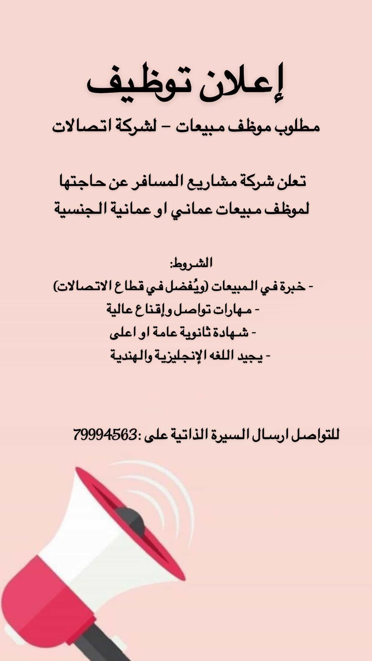 شركة مشاريع المسافر - وظيفة شاغرة ( موظف/ة مبيعات )
