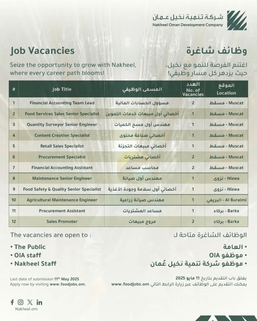 شركة تنمية نخيل عمان - 16 وظيفة شاغرة