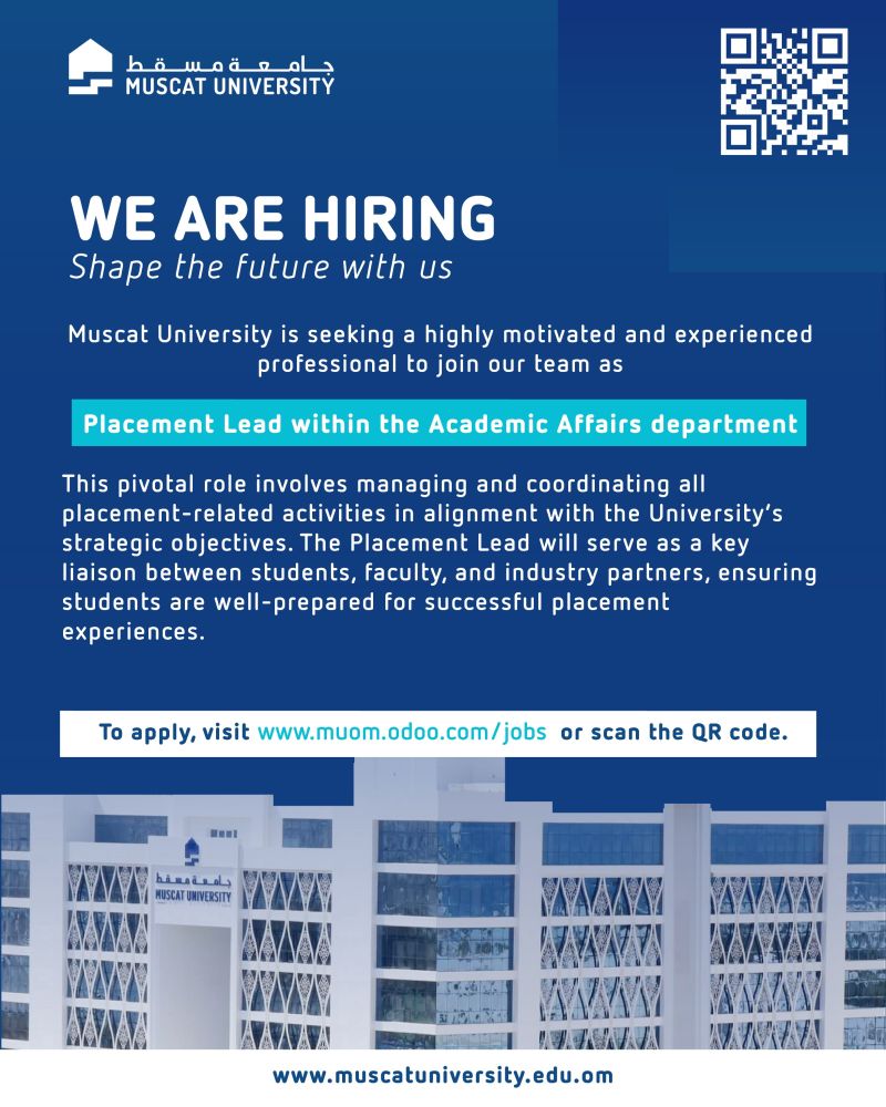 جامعة مسقط - وظيفة شاغرة ( Placement Lead within the Academic Affairs department )