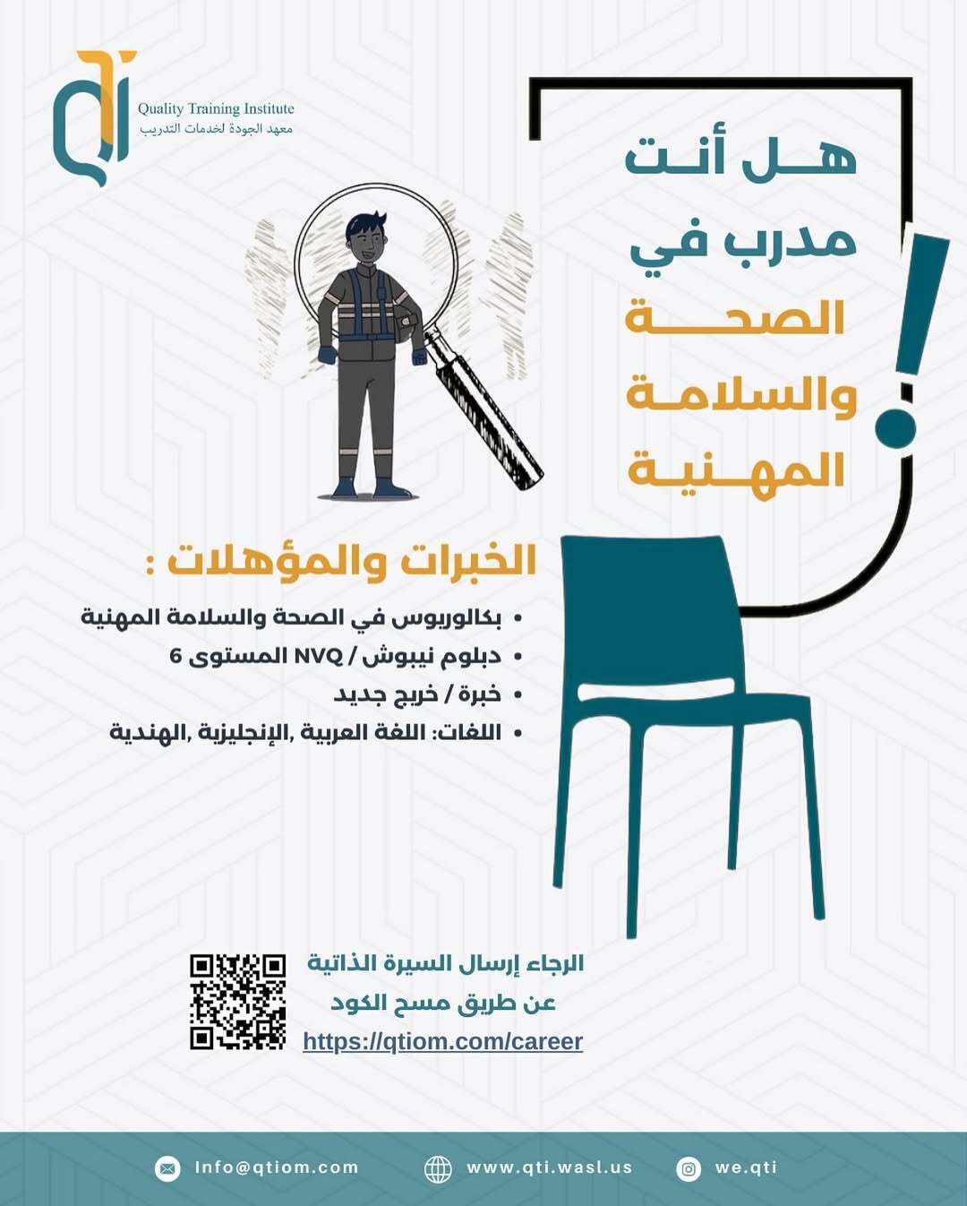 معهد الجودة لخدمات التدريب - وظيفة شاغرة ( مدرب الصحة والسلامة المهنية )