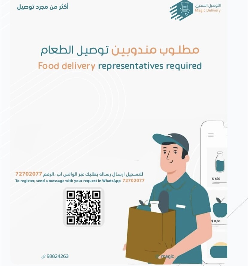 شركة التوصيل السحري - فرصة عمل ( مندوبين توصيل )