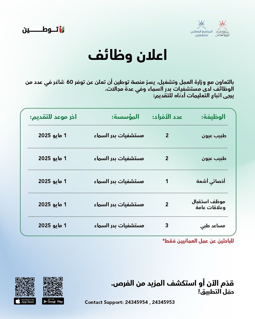 منصة توطين - 60 وظيفة شاغرة في مستشفيات بدر السماء
