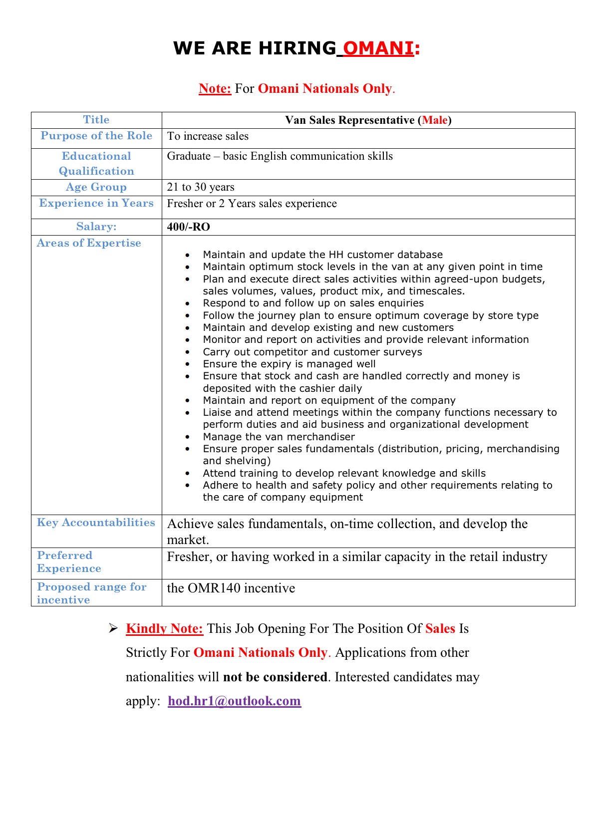 شركة وصلة - وظيفة شاغرة ( Outdoor Sales )
