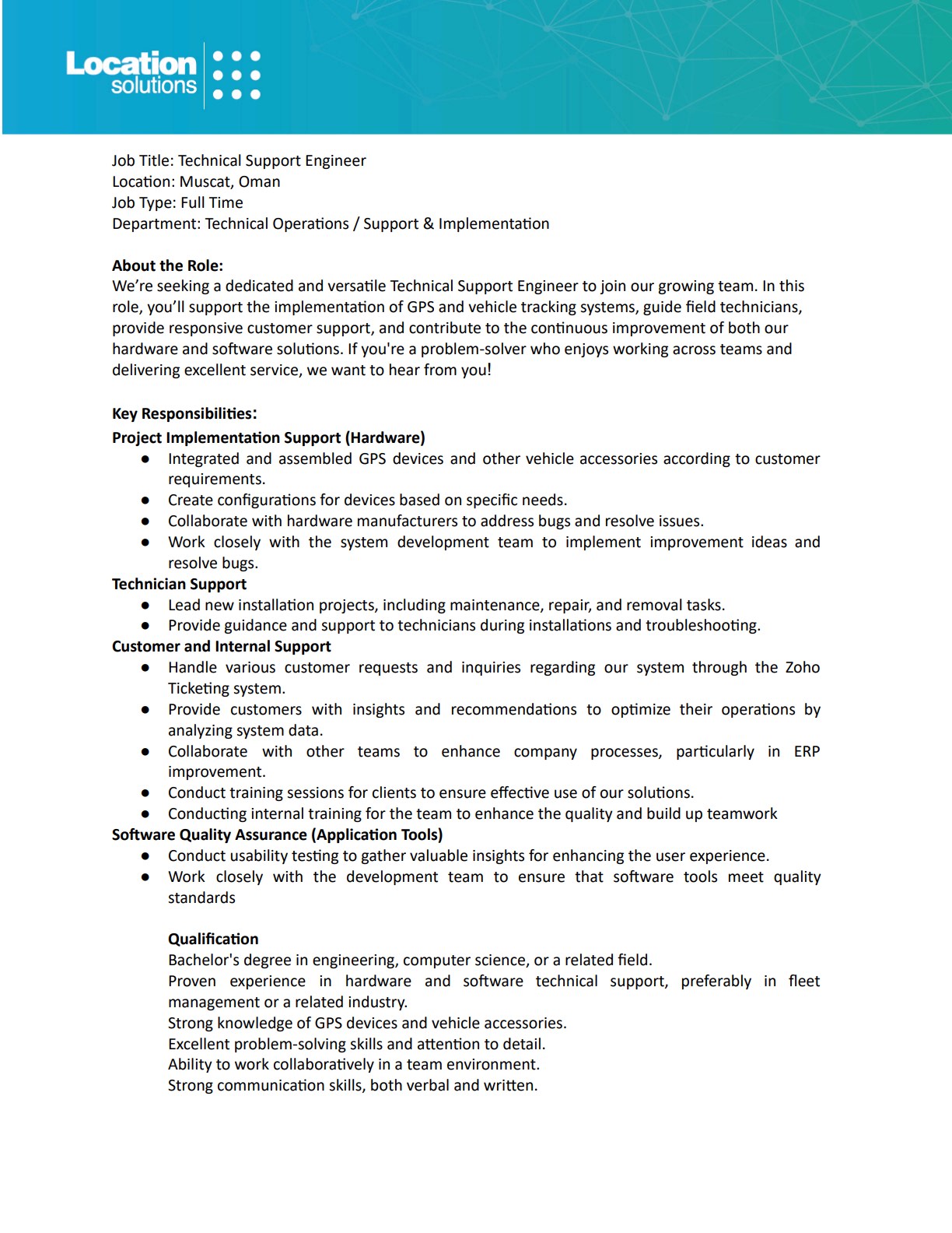 مؤسسة حلول الأماكن في الخوض - وظيفة شاغرة ( Technical Support Engineer )
