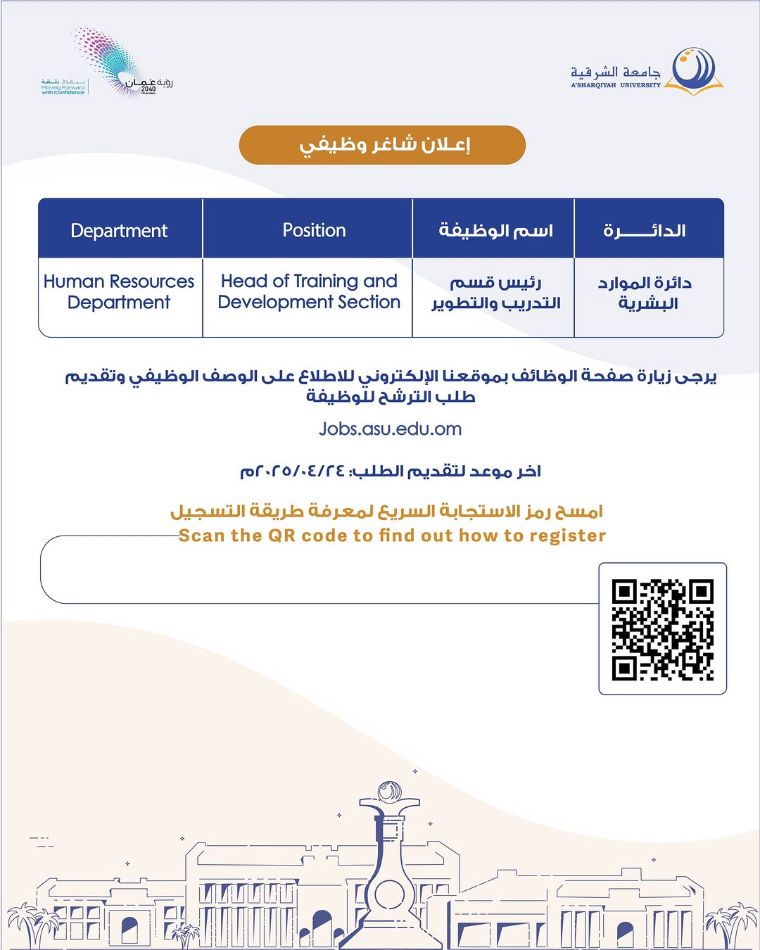 جامعة الشرقية - وظيفة شاغرة ( رئيس قسم التدريب والتطوير )