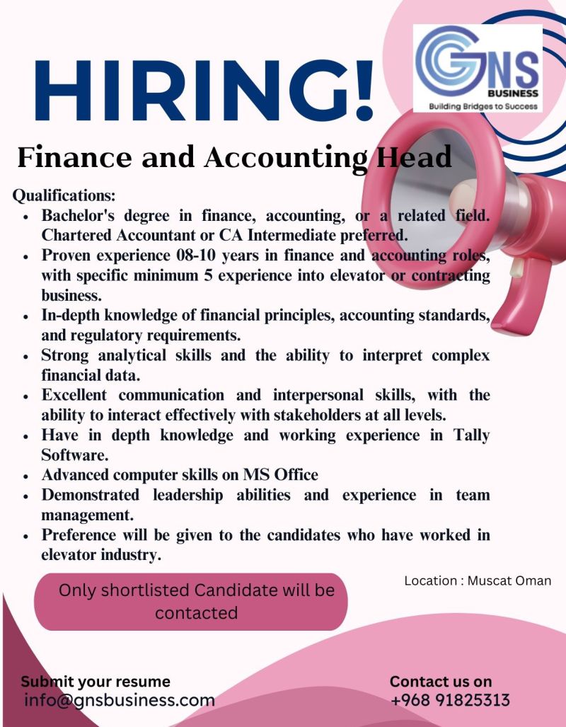 شركة GNS Business - وظيفة شاغرة ( Finance and Accounting Head )