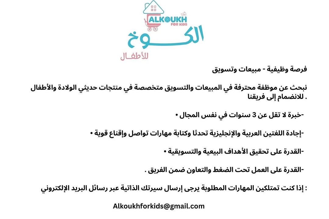 شركة الكوخ للأطفال في مسقط - وظيفة شاغرة ( مبيعات وتسويق )