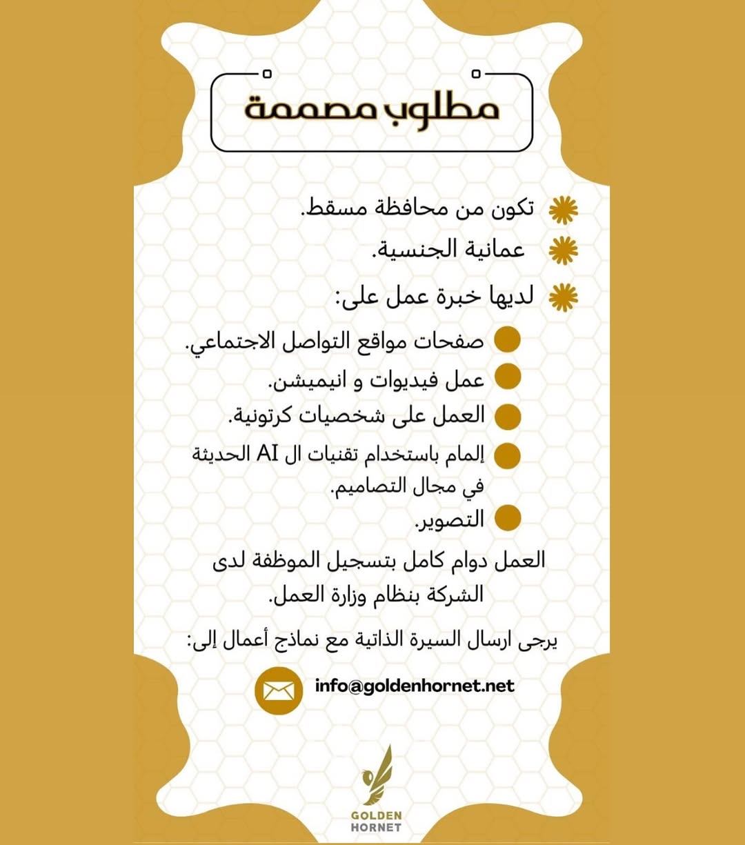 شركة جولدن هورنت لتنظيم الفعاليات ووكالة إعلامية - وظيفة شاغرة ( مصممة )