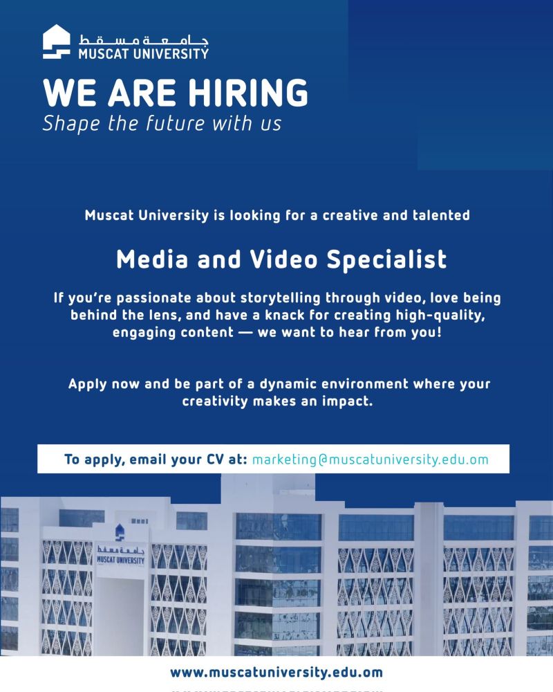جامعة مسقط - فرصة شاغرة ( Media and Video Specialist )