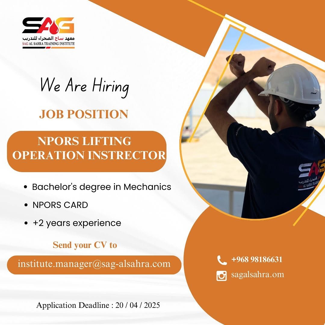 معهد صاج الصحراء للتدريب - وظيفة شاغرة ( NORS LIFTING OPERATION INSTRECTOR )