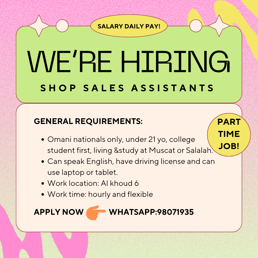 إحدى الشركات الرائدة في الخوض - وظيفة شاغرة بدوام جزئي ( SHOP SALES ASSISTANTS )