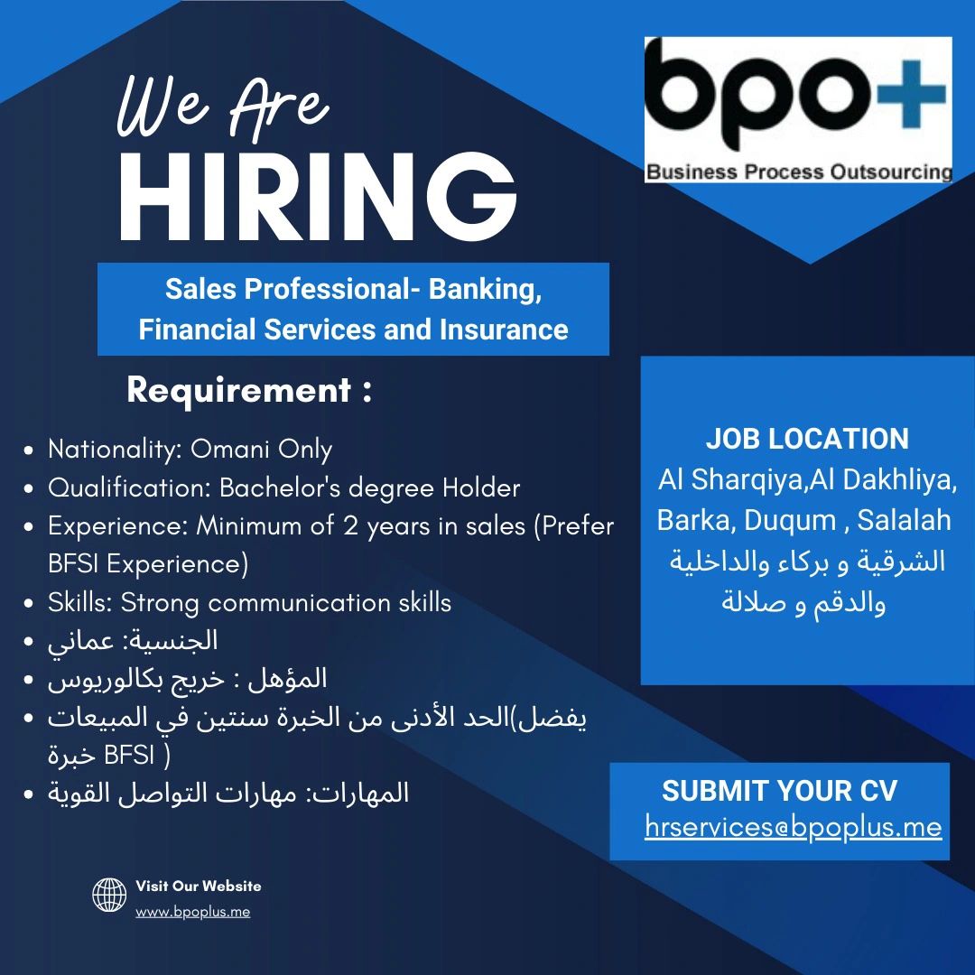 شركة bpoplus - وظيفة شاغرة ( Sales Professional- Banking, Financial Services and Insurance )
