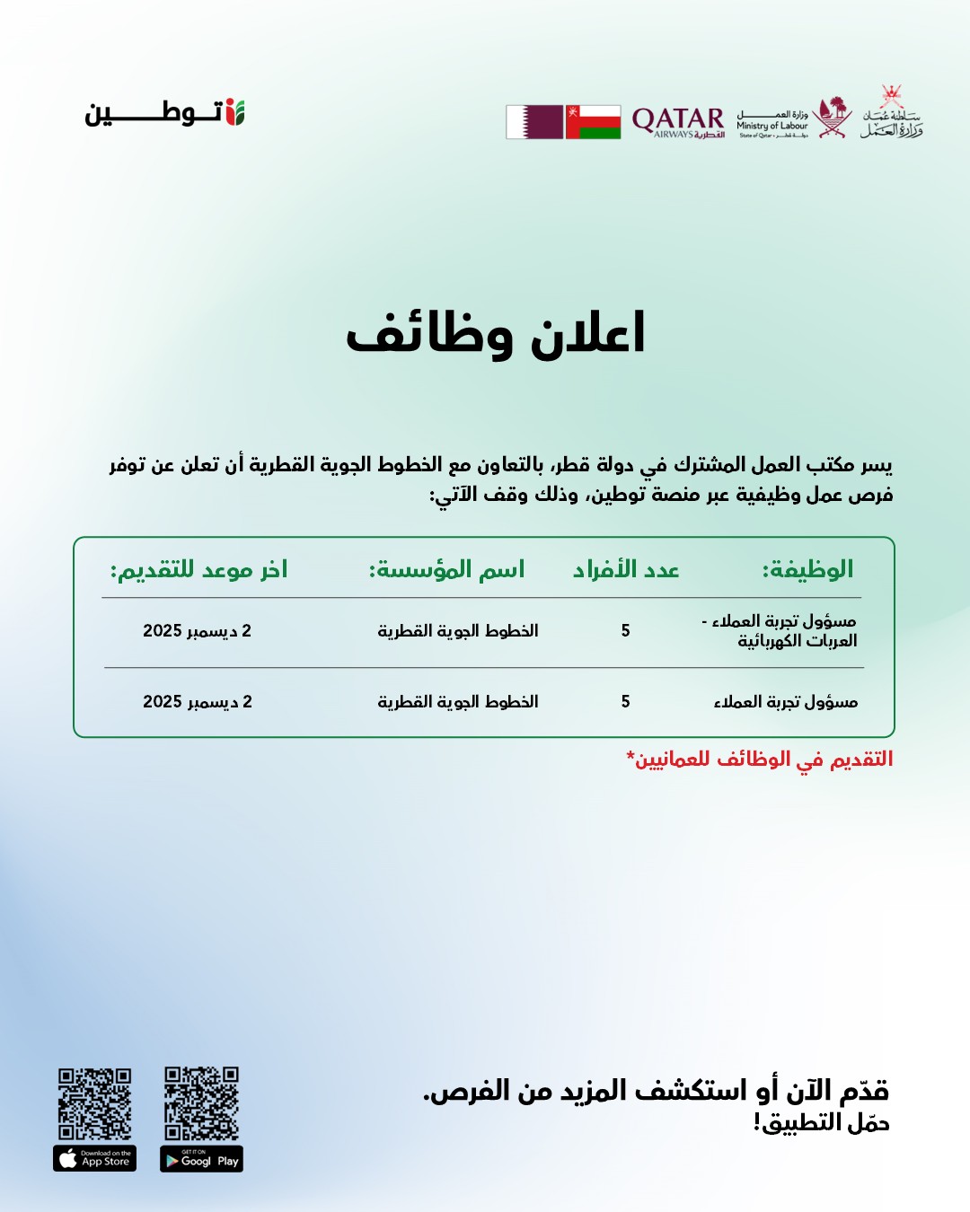 منصة توطين - توفر فرص وظيفية في الخطوط الجوية القطرية