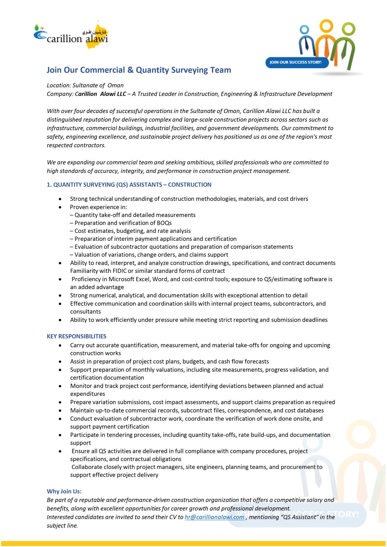 شركة كاريليون علوي - وظيفة شاغرة ( Commercial & Quantity Surveying )
