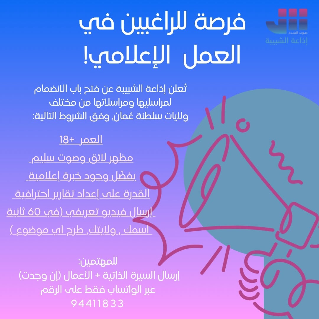 إذاعة الشبيبة - فتح باب الانضمام لمراسليها ومراسلاتها من مختلف ولايات سلطنة عُمان