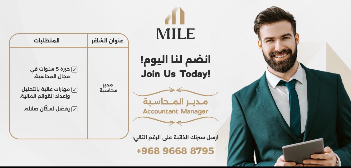 شركة مايل لإدارة العقارات - والتسويق العقاري - وظيفة شاغرة ( مدير محاسبة )