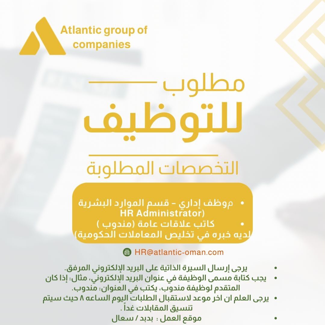 مجموعة شركات أتلانتيك - فرص وظيفية شاغرة ( موظف اداري + كاتب علاقات عامة (مندوب)