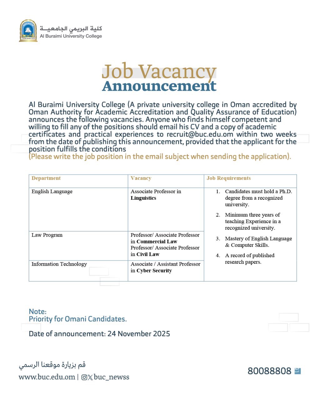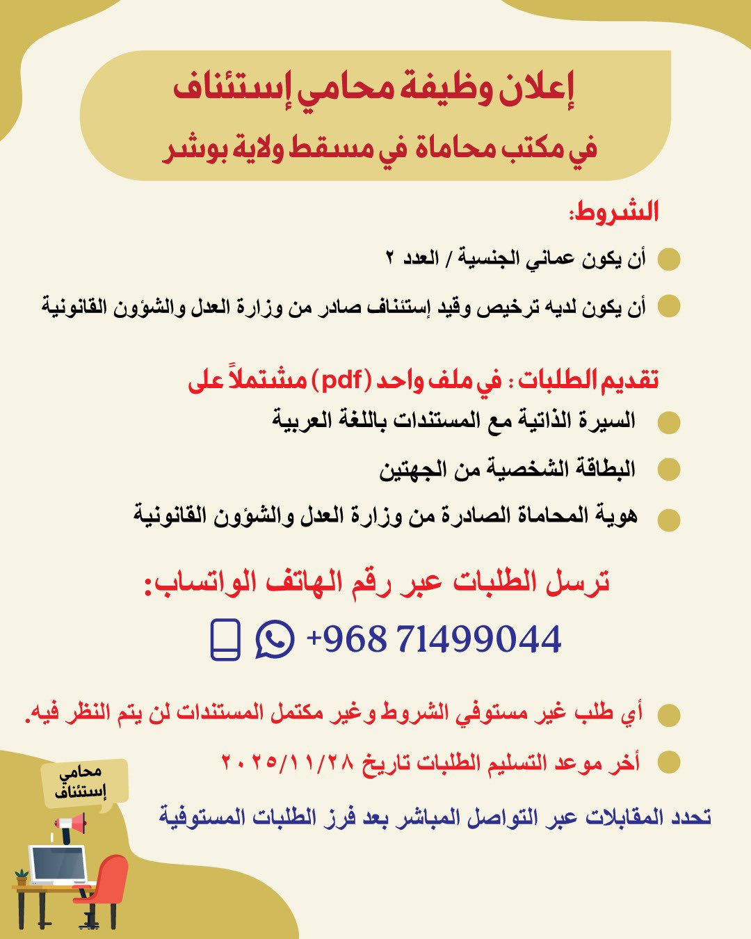 مكتب محاماة في ولاية بوشر - وظيفة شاغرة ( محامي إستئناف )