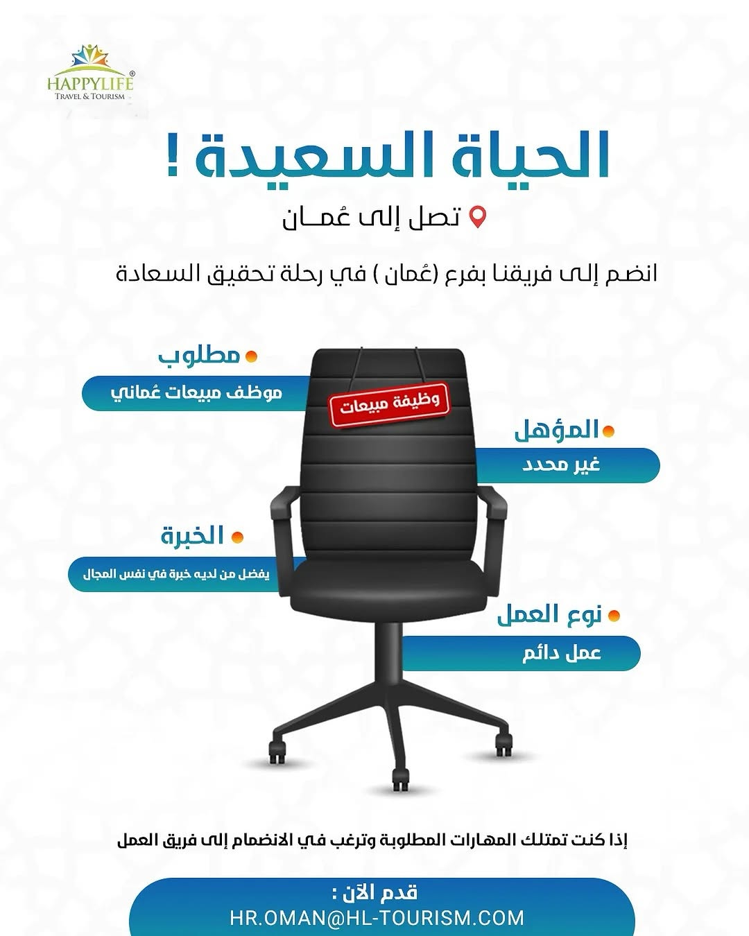 هابي لايف للسفر والسياحة - وظيفة شاغرة ( موظف مبيعات )