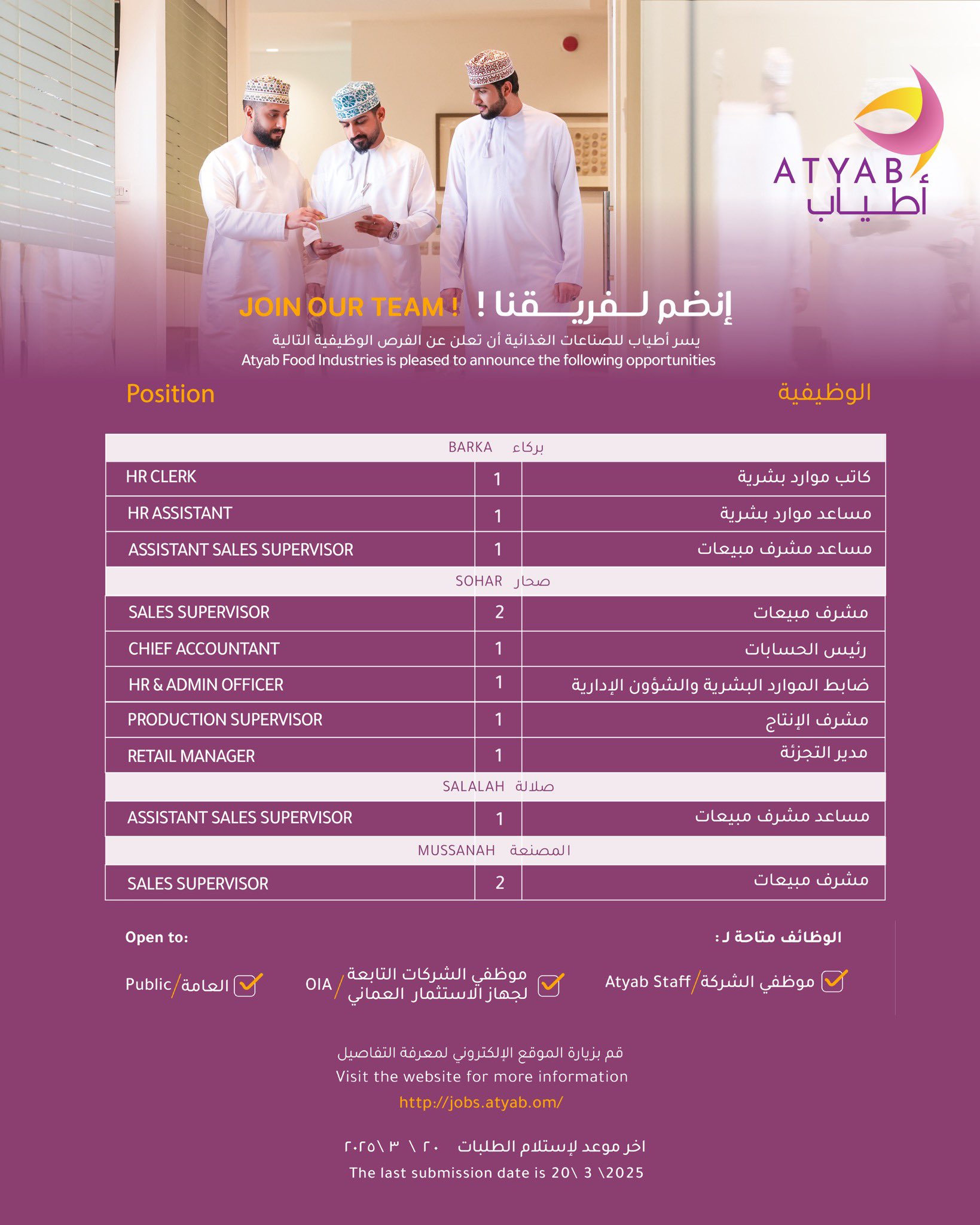 شركة أطياب للصناعات الغذائية - 10 وظائف شاغرة