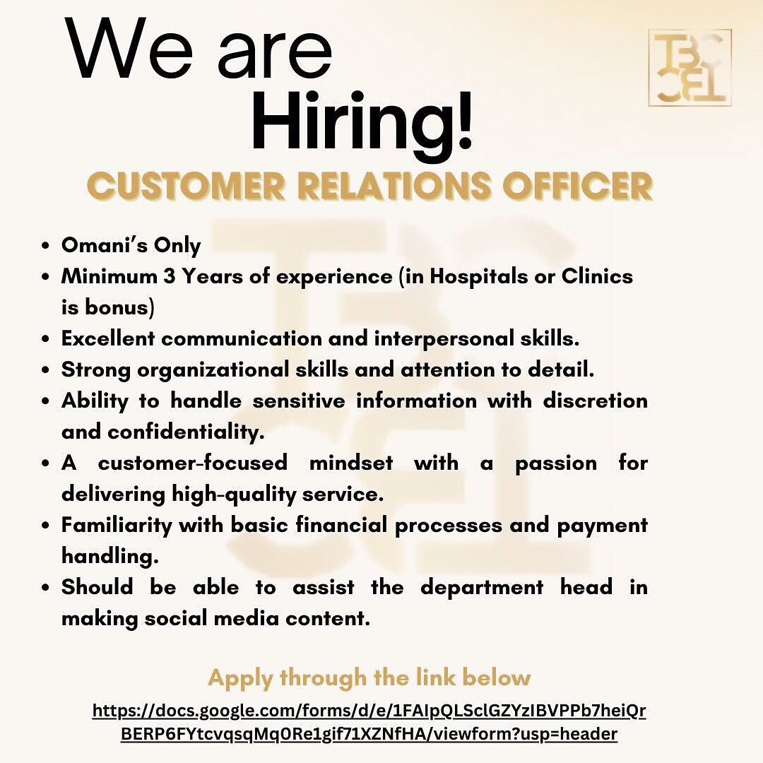 عيادة بيوتي كود في مسقط - وظيفة شاغرة ( مسؤول علاقات عامة )