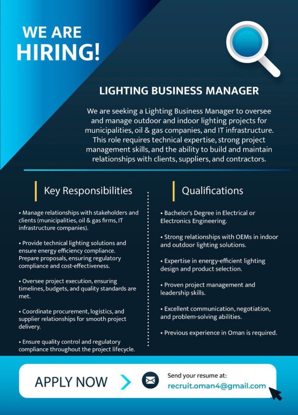 شركة رائدة في الخوير - وظيفة شاغرة ( LIGHTING BUSINESS MANAGER )