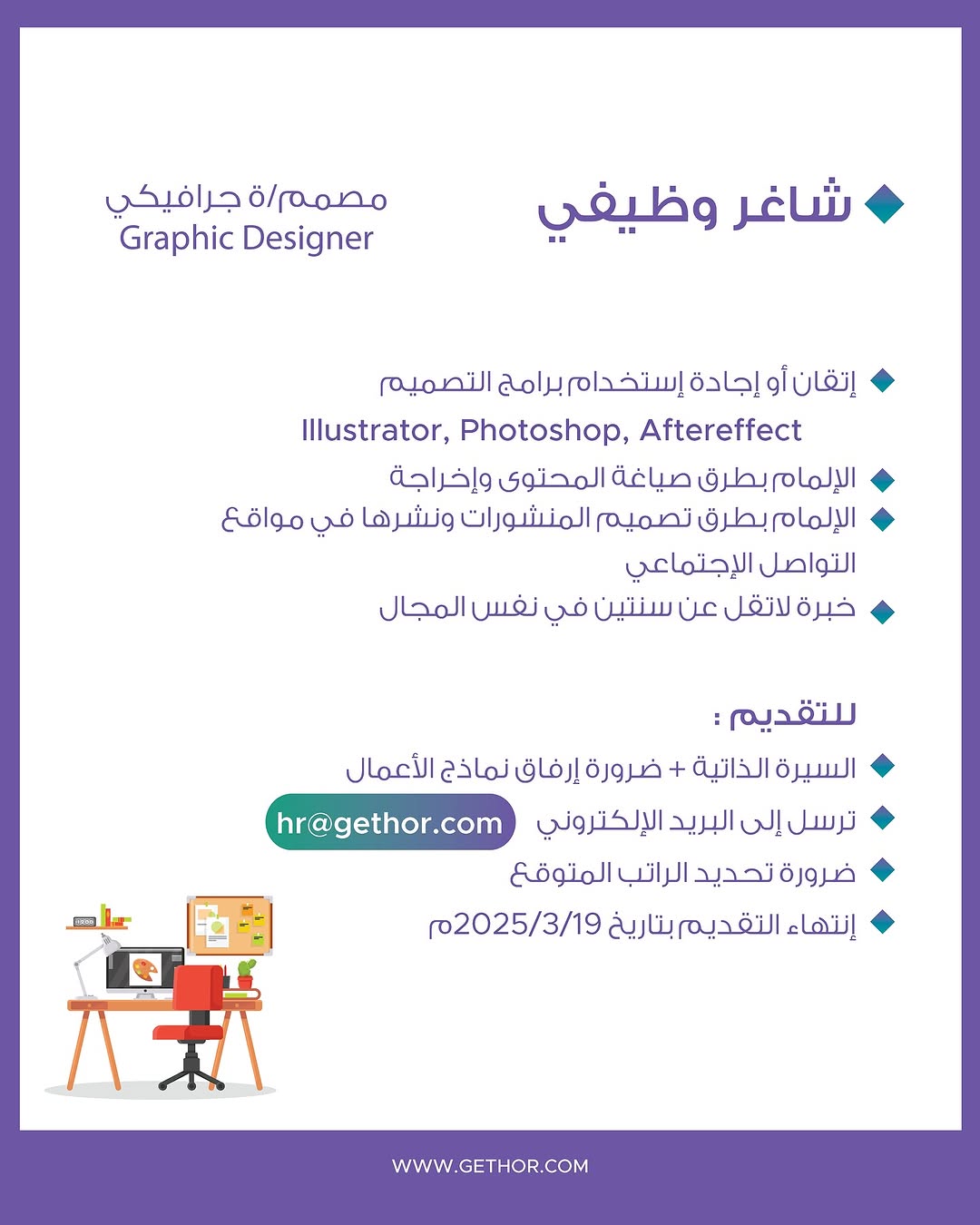 شركة Gethor - وظيفة شاغرة ( مصمم/ة جرافيكي )