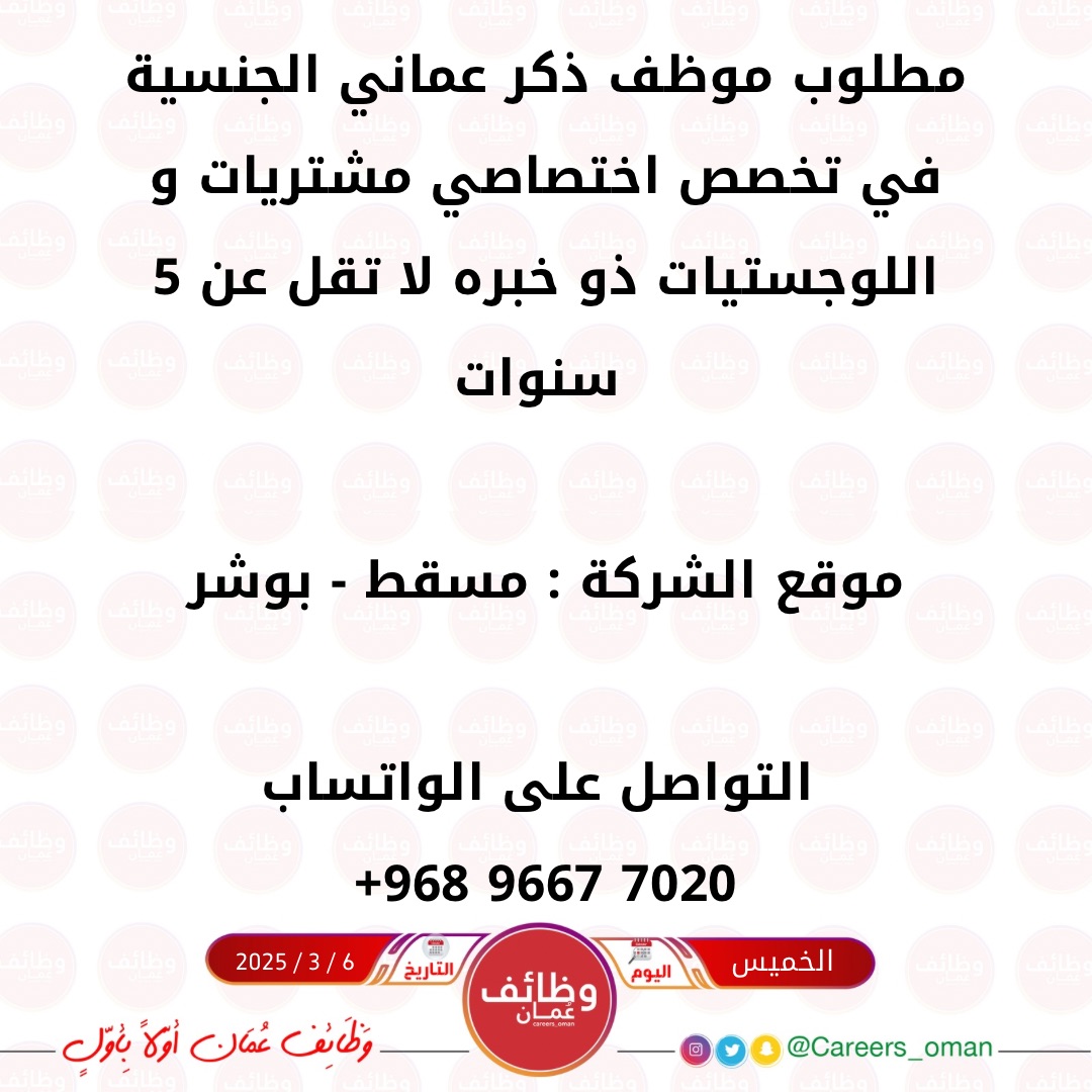 شركة رائدة في بوشر - وظيفة شاغرة ( اختصاصي مشتريات و اللوجستيات )