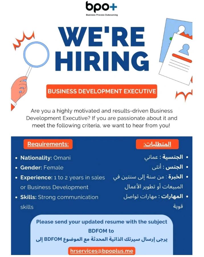 شركة بزنس بروسيس اوتسورسينج - وظيفة شاغرة ( BUSINESS DEVELOPMENT EXECUTIVE )