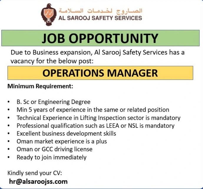 الصاروج لخدمات السلامة - وظيفة شاغرة ( OPERATIONS MANAGER )