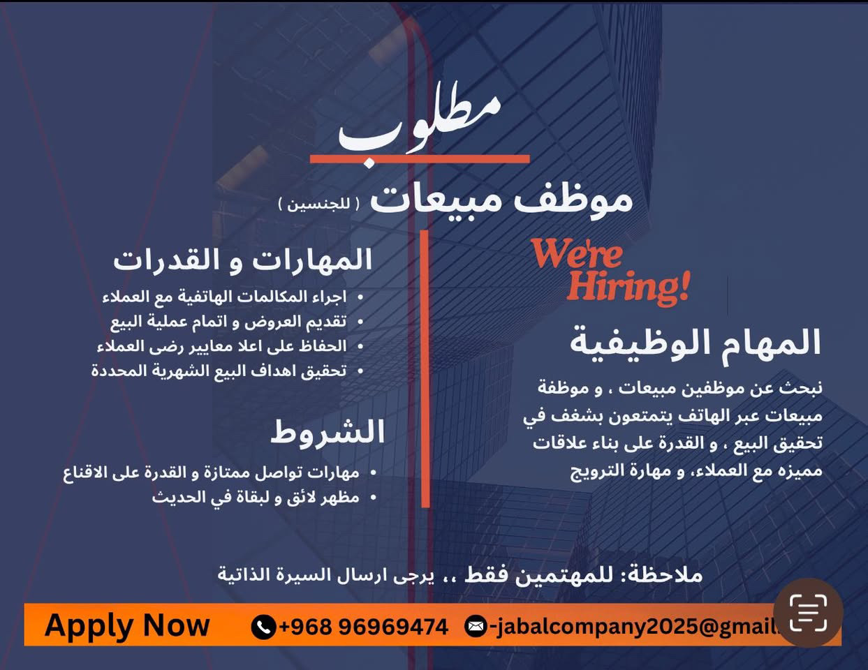 شركة عقارية في الخوض - وظيفة شاغرة ( موظف مبيعات )