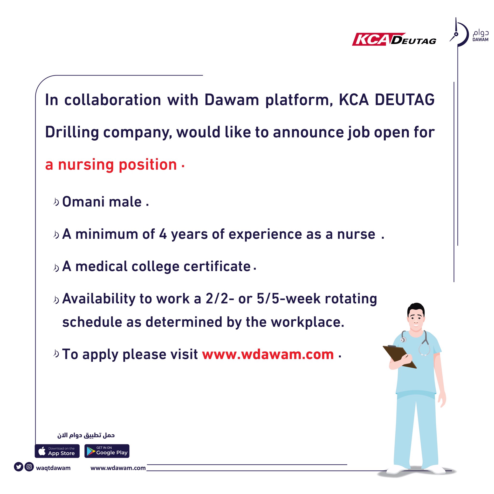 منصة دوام بالتعاون مع شركة KCA DEUTAG - وظيفة شاغرة ( nursing )