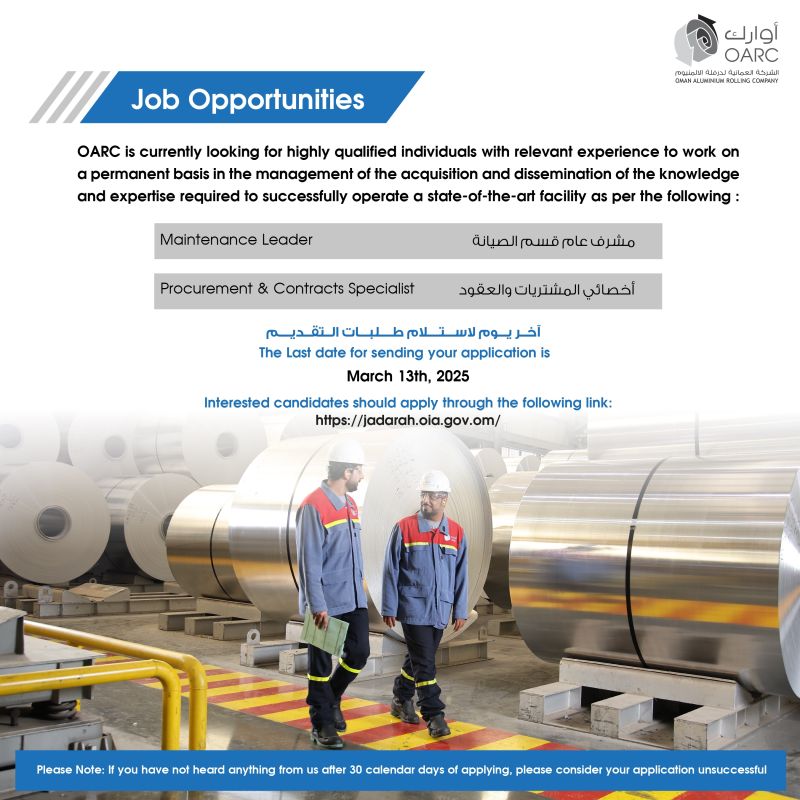الشركة العمانية لدرفلة الألمنيوم أوارك - فرص وظيفية