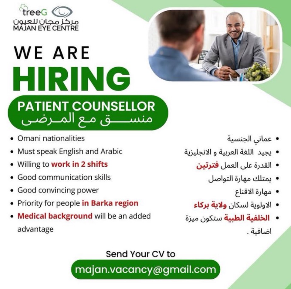مركز مجان للعيون في بركاء - وظيفة شاغرة ( منسق مع المرضى )