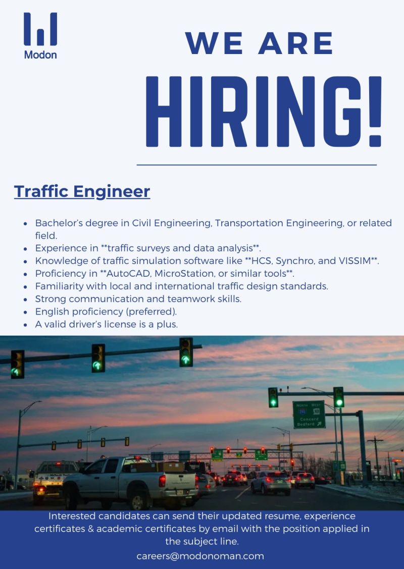شركة مدن للاستشارات الهندسية في مسقط - وظيفة شاغرة ( Traffic Engineer )