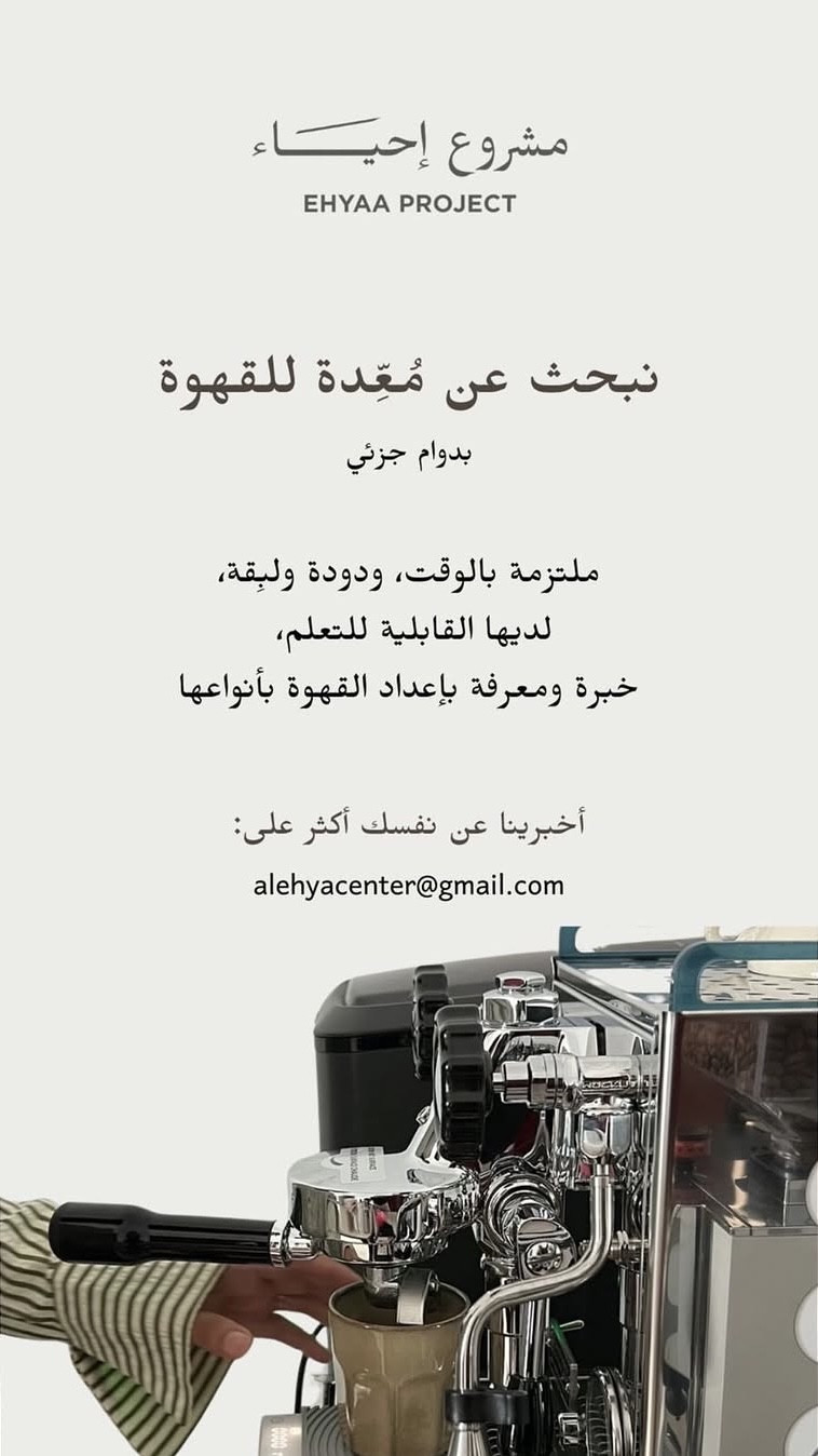 مشروع إحياء في العذيبة - فرصة وظيفية بدوام جزئي ( معدة للقهوة )