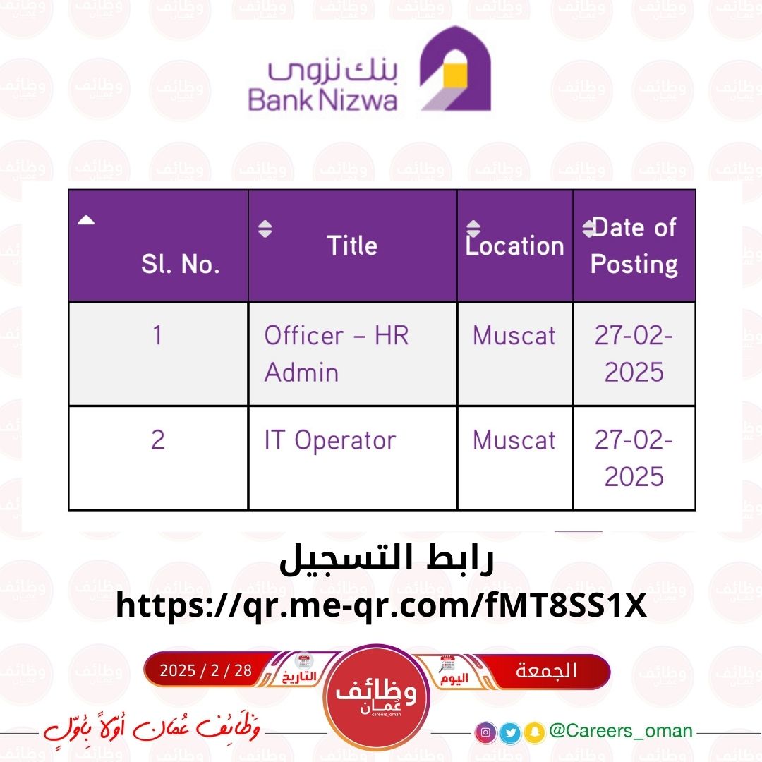 بنك نزوى - فرص وظيفية