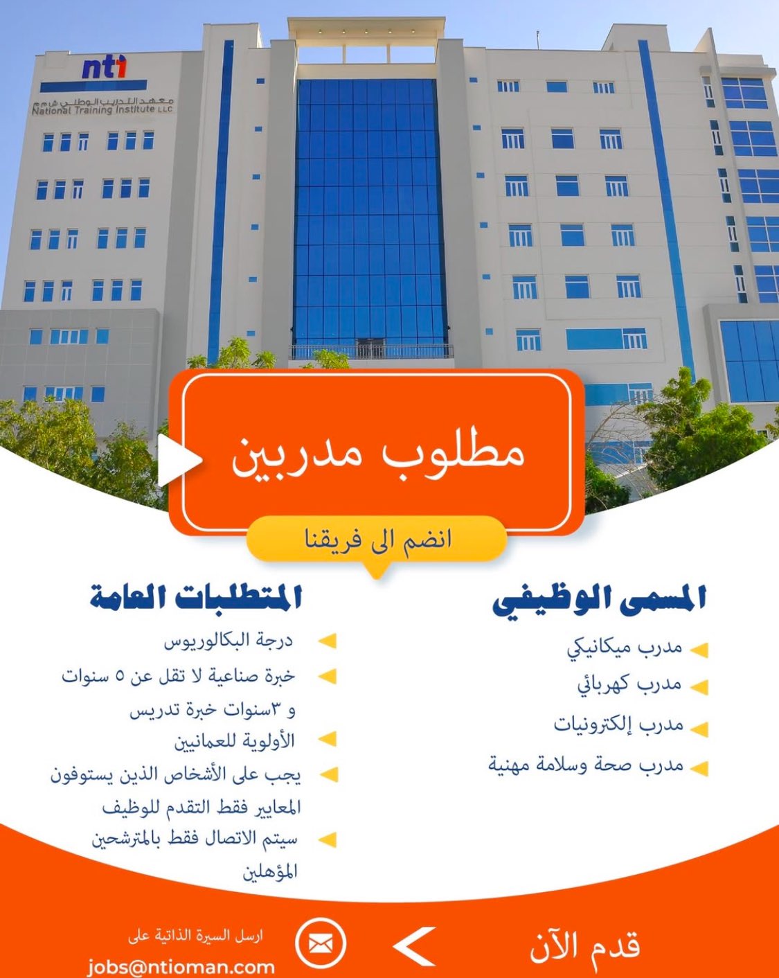 معهد التدريب الوطني - وظائف شاغرة