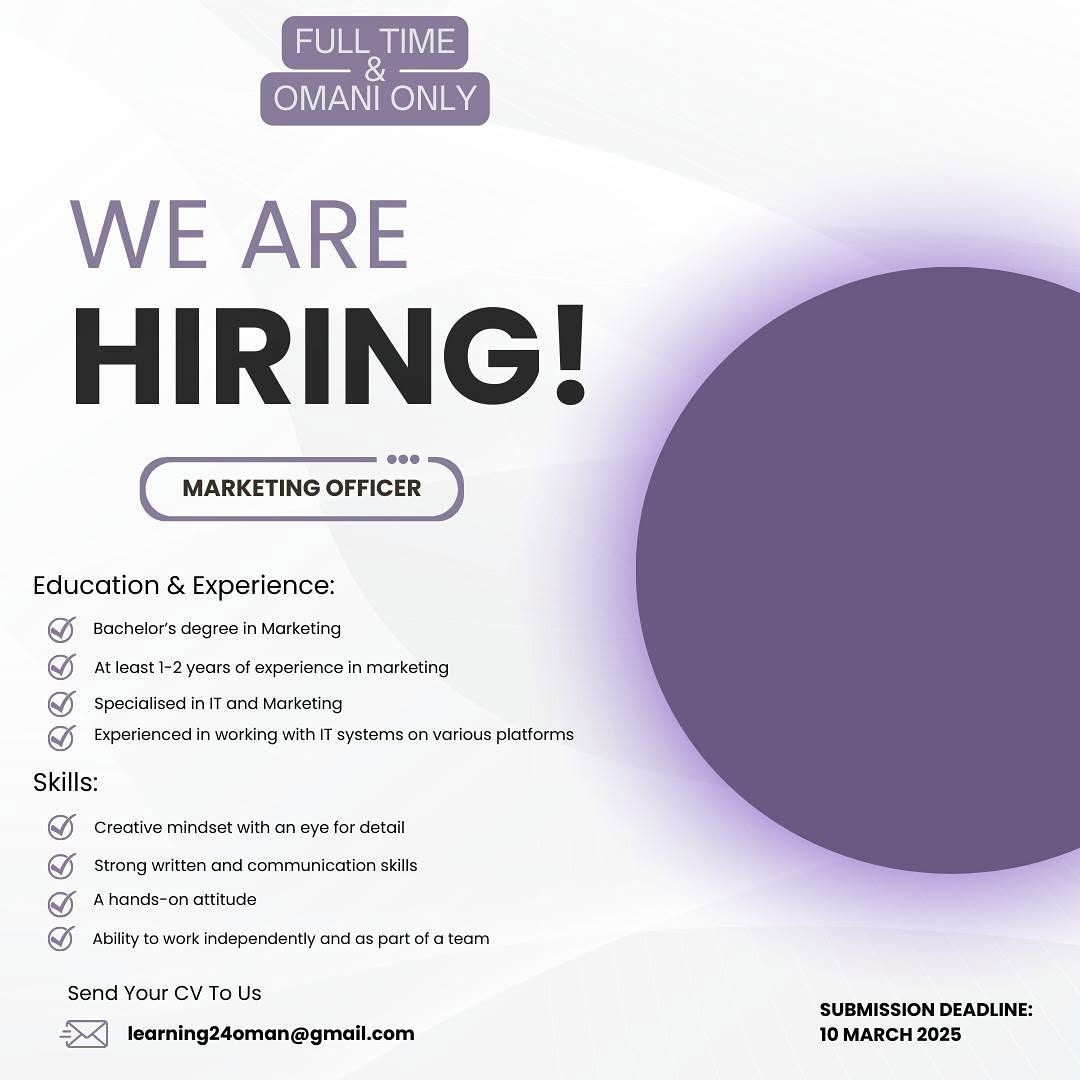 شركة رائدة في العذيبة - وظيفة شاغرة ( MARKETING OFFICER )