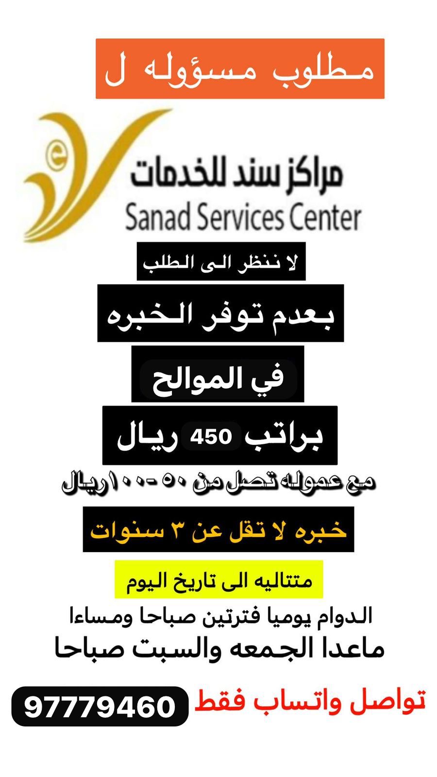 مراكز سند للخدمات في الموالح - وظيفة شاغرة ( مسؤولة مكتب سند )