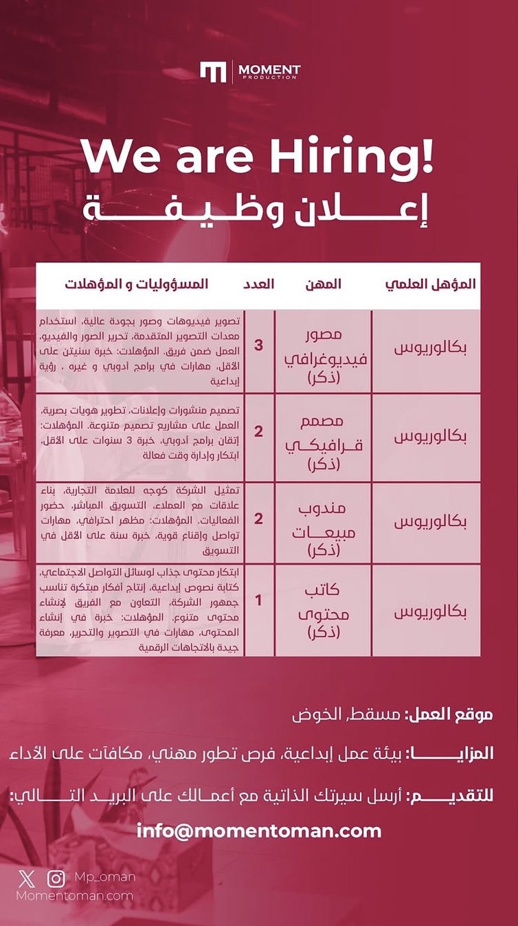 شركة مومنت للانتاج الفني في الخوض - وظائف شاغرة