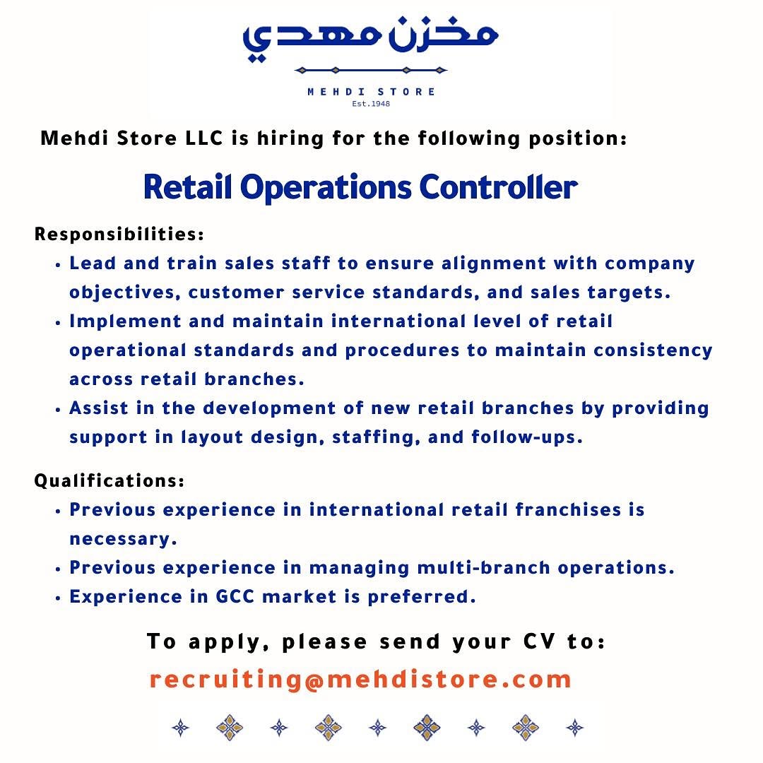 مخزن المهدي - وظيفة شاغرة ( Retail Operations Controller )